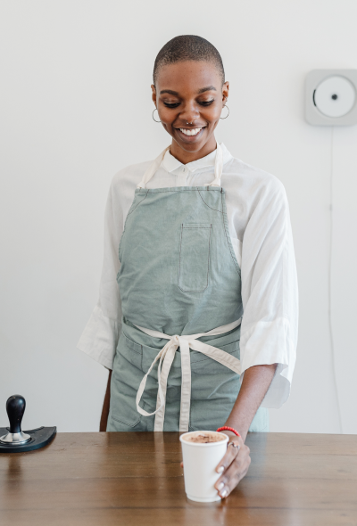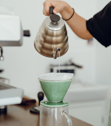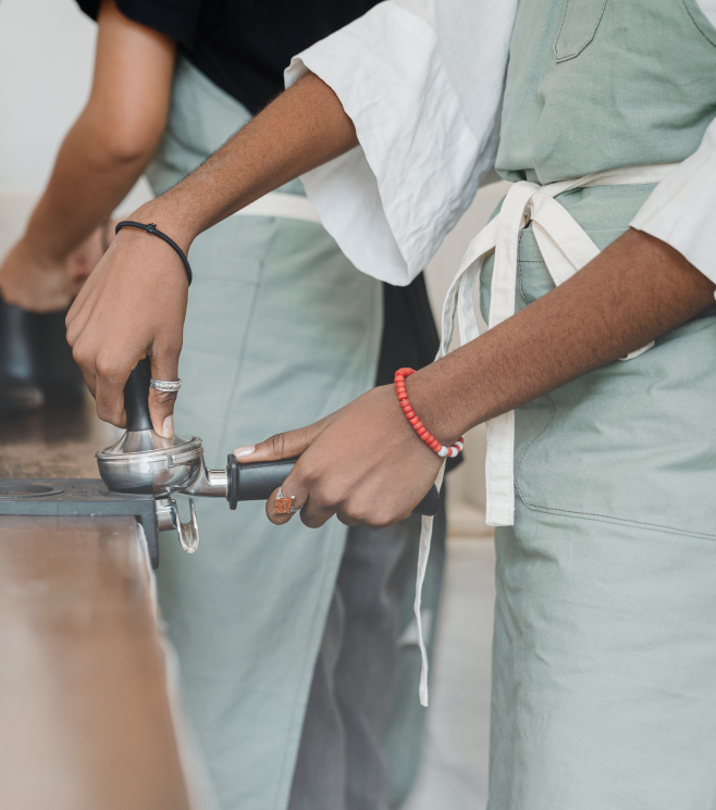 FRESHLY GROUND BEANS IN A SMALL CUP WILL