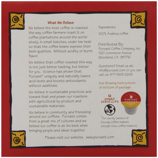 • Puroast Low Acid Coffee Single Serve Keurig Compatible Decaffeinated House Blend 12 Count